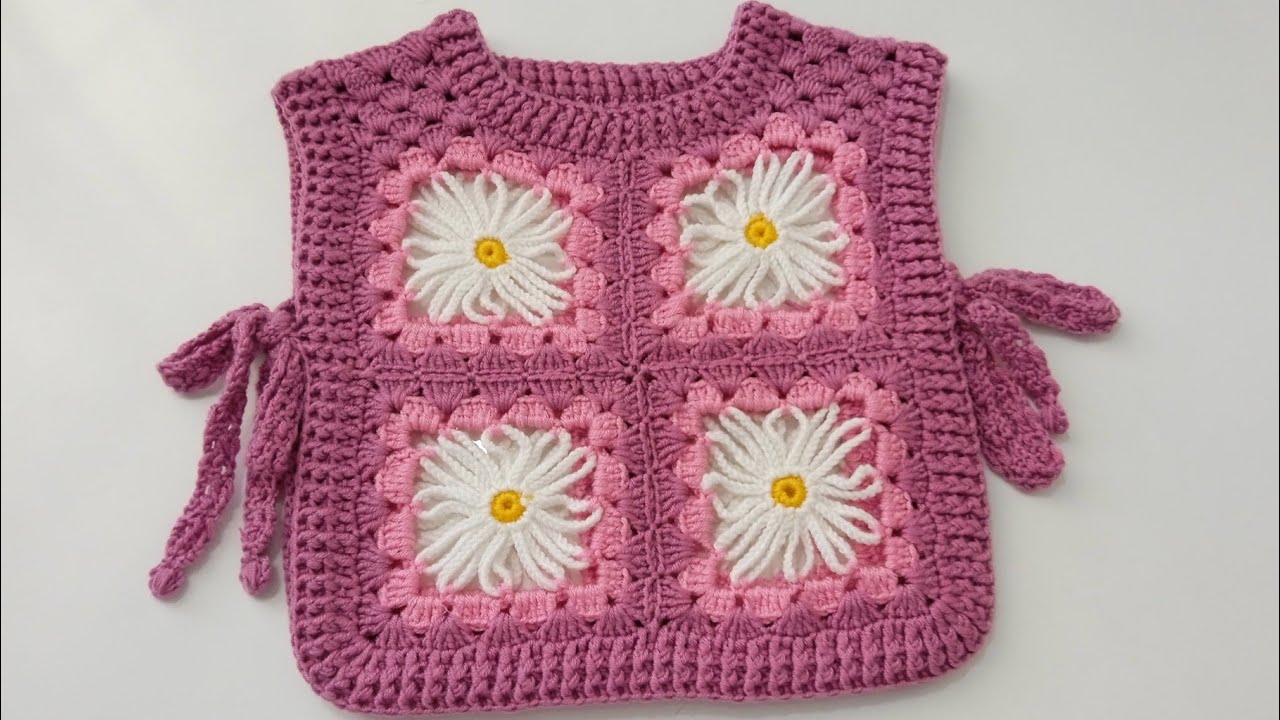 - Attach Embellishment: Sew the small crochet bow or pearl button to the top center of the neckline.
